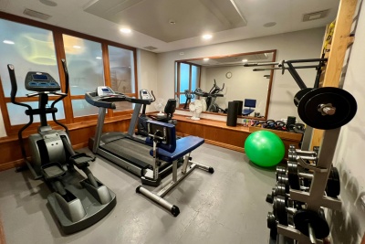 The fitness room is equipped with: